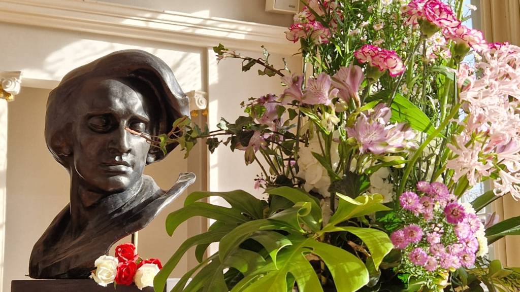 The outer movements revolve like two glittering, enchanted planets around the moonlit, sublime melody of the central Larghetto movement, a nocturnal love song inspired by the soprano Konstancja Gładowska, Chopin’s object of distant sensual fascination whom he would soon leave in Poland. The well-known conflict of duty to one’s career and love. Liszt regarded the movement as ‘absolute perfection‘. Zdzisław Jachimecki, a Polish historian of music, composer and professor at the Jagiellonian University regarded it as ‘one of the most beautiful pages of erotic poetry of the nineteenth century.’