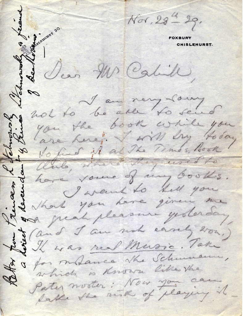 In a long, somewhat bizarre letter to Eddie dated 28 November 1929 following this farewell recital, Mechtilde wrote: